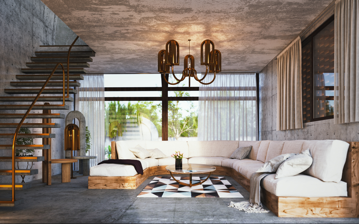 為了讓建築內外共享相同的幾何設計元素,Arc House 內的餐桌椅、床、沙發、吊燈等,也都由設計師特別設計訂做,以一系列相互呼應的弧形與流線型設計,營造出充滿設計感的居家美學。